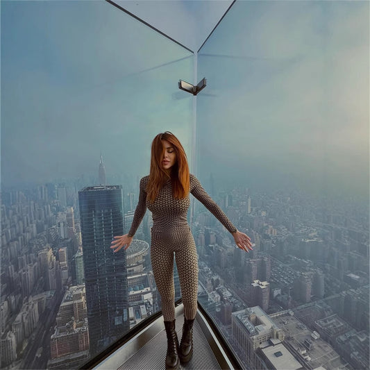European And American Fashion Slim Elastic Printed Long-sleeved Round Neck Jumpsuit