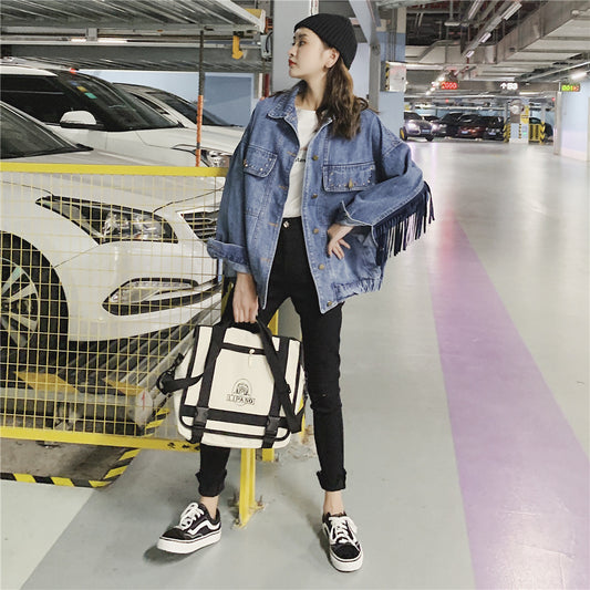 Spring And Autumn Women's V-neck Long Sleeve Fringe Jacket Solid Color Loose Short Coat
