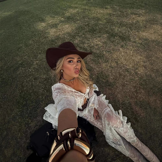 Ruffled Flared Sleeve Lace Navel Sexy Transparent Skirt
