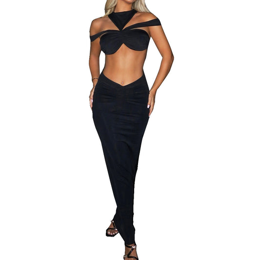 Niche Spaghetti Straps Midriff-baring Vest Sheath Skirt Two-piece Set