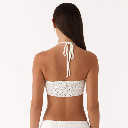 Pure Color Halter Lace-up Cutout Knitted Camisole