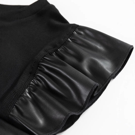 Pullover Women's Mesh Stitching Ruffle Cotton Short Sleeve Solid Color T-shirt