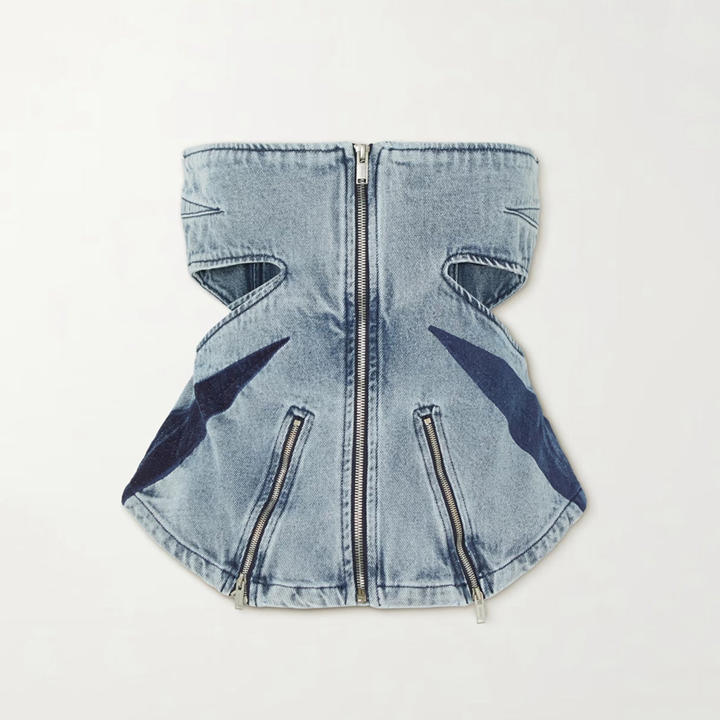 Color Contrast Patchwork Tube Top Three-dimensional Elastic Washed Jeans Two-piece Set