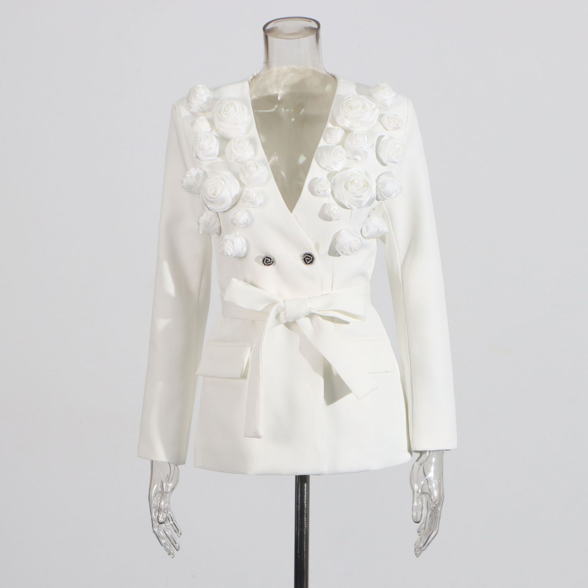 Stitching Flower Ribbon Suit Jacket High Waist Slim Suit