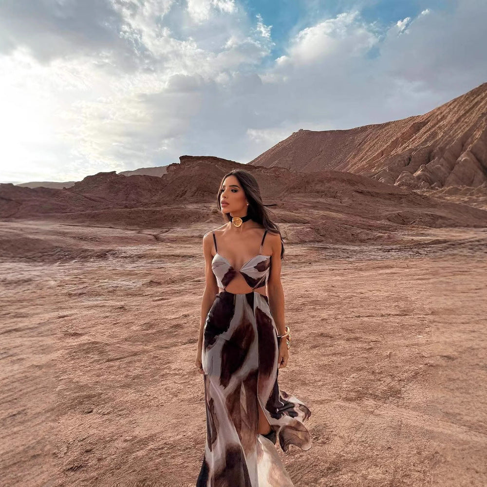 Tie-dye Sexy Front Empty Spaghetti Straps Sleeveless Elegant Vacation Dress
