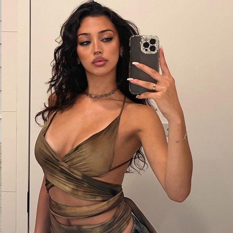 Women's New Printed Lace Up Slim Fit Backless All-match Vest For Women